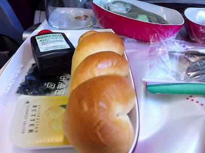 相変わらず、、見た目が??の機内食であるが、上海行きよりましである。